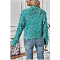 The Aruba Blue Rhinestone Decor Multicolor Confetti Sweater Cardigan is both sweet and stylish with its vibrant multicolor confetti pattern. This cardigan features a classic sweater style with a button front making it easy to dress up or down. The flattering fit highlights a good figure and pairs well with jeans and skirts for a chic look. Crafted for the latest fall fashion this cardigan offers high elasticity for a comfortable wear. | Everyday The Label Women's Aruba Blue Rhinestone Decor Multicolor ...