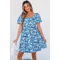 This Blue Floral Puff Sleeve Babydoll Mini Dress combines delicate floral print with a flattering babydoll silhouette. The square neckline accentuates the collarbones while the puff sleeves add a playful and graceful touch. Perfect for a charming and effortless look. | Everyday The Label Women's Blue Floral Puff Sleeve Babydoll Mini Dress | Size: Medium
