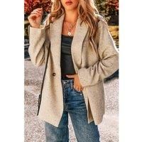 Relaxed fit long sleeve beige blazer with notch collar | Everyday The Label Women's Oatmeal Single Breasted Elegant Suit Jacket Blazers | Size: 18