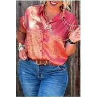 The Rose Red Plus Size Metallic Sheen Short Sleeve Button Up Shirt adds a touch of shimmer and style to your ensemble. Stand out with the luxurious and eye-catching metallic sheen fabric while staying stylish and comfortable with the chic short sleeves. Embrace the timeless and polished look of the button-up design. | Everyday The Label Women's Rose Red Plus Size Metallic Sheen Short Sleeve Button Up Shirt in Crimson | Size: 3XL