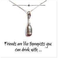 Our small wine bottle charm necklace is a fun gift to give to a really good friend, it is presented on a message card with a humorous message that says "Friends are like therapists you can drink with", there is a small space for you write a little note or it can also be left blank which in turn is sent in a black gift box. Say thank you to your best friends for listening put a little her smile on her face with this fun gift. It makes a great gift for her birthday, a leaving gift, fun graduation gift f...