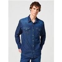 Wrangler Indigood Icons 27MW shirt Dark blue denim 100% cotton Two front flap pockets, designer logo, western yoke Designer colour: Dark Stone - Manufacturers part number: W5MSLW96N