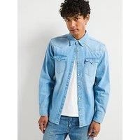 Levi's Barstow Denim Western Shirt - Light Wash Size & Fit Regular fit - order your usual size Model is 6'1" and wears a size Medium Details Barstow Denim Western Shirt by Levi's Light Wash Made from lightweight blue wash denim Signature logo tab to the chest Pointed collar Centre front button up closure Two button down pockets at the chest Long sleeves with button fastenings at the cuffs Curved hemline Material Material Content: 100% COTTON