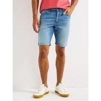 Wrangler Texas Denim Shorts- Dark Blue Crafted for comfort and durability, these Texas Shorts are a warm-weather staple that blends a traditional knee-length cut with the freedom and flexibility of low-stretch denim. The contrast stitching, leather patch on the back pocket and cuffed leg hems add a touch of Wrangler's signature detailing, making these shorts a versatile addition to your casual wardrobe. Functional details include 4 roomy pockets, a smaller coin pocket, 7 belt loops and a leather patch ...
