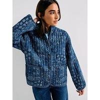 Levi's Lottie Liner Jacket - Emme Patchwork Bandana Dark Indigo Size & Fit True to size - order your usual size Regular fit Regular length Available in sizes XS - L Model is 5'9" and wears a UK size 8 Details Lottie Liner Jacket - Emme Patchwork Bandana Dark Indigo by Levi's Blue Quilted fabric with floral paisley print Standup collar Popper front fastening Front patch pockets Long sleeves Material & Care Material Content: 100% COTTON Washing Instructions: Machine Washable
