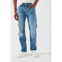 Levi's 505 Regular Fit Jeans - Hats Off - Light Blue Size & Fit True to size - order your usual size Regular fit Extra room in the thigh Sits at waist Straight fit Available in sizes 30 - 38 Details 505 Regular Fit Jeans - Hats Off by Levi's Light Blue Cotton denim with a hint of stretch for all-day comfort Belt loops 5-pocket styling Button and zip-fly fastening Material & Care Material Content: 99% COTTON, 1% ELASTANE Washing Instructions: Machine Washable