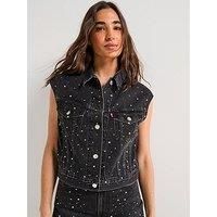 Levi's Shrunken 90S Vest Top Size & Fit True to size - order your usual size Regular fit Available in sizes XS - L Model is 5'9" and wears a UK size 8 Details Shrunken 90S Vest by Levi's Black Sequin embellished Sleeveless Shirt collar Button fastening Pockets on chest Material & Care Material Content: 100% COTTON Washing Instructions: Machine Washable