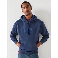 Levi's Relaxed Back Graphic Fleece Logo Hoodie - Navy Size & Fit True to size - order your usual size Relaxed fit Available in sizes S - 2XL Model is 6'2" and wears a size Medium (M) Details Relaxed Back Graphic Fleece Logo Hoodie - Navy by Levi's Dark Blue Logo Drawstring hood Long sleeves Front kangaroo pocket Material & Care Material Content: 88% COTTON, 12% POLYESTER Washing Instructions: Machine Washable - Manufacturers part number: 38479