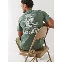 Levi's Levis Relaxed Fit Animal Humour Back Graphic T-Shirt Size & Fit True to size - order your usual size Relaxed fit Available in sizes S - XL Details Levi's Relaxed Fit Animal Humour Back Graphic T-Shirt by Levi's Dark Green Logo on chest Graphic print on back 'No days off' slogan Crew neck Short sleeves Material & Care Material Content: 100% COTTON Washing Instructions: Machine Washable