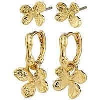 Pilgrim AJANI earrings 2-in-1 set, gold-plated Two ways to bloom. The AJANI earring set by Pilgrim gives you double the style - wear them as cute studs, or switch it up with dainty hoops featuring removable flower charms. Crafted with wavy, nature-inspired lines, these floral beauties bring a touch of calm and poetic elegance to your look. Its the kind of sweet, versatile set that brings laid-back charm to your everyday staples or finishes off your party outfit effortlessly. Depth: 11 MM Height: 17 MM W...