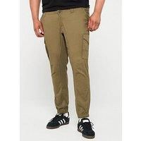 Jack & Jones Plus Paul Flake Slim Fit Cuffed Cargo Trousers Size & Fit True to size - order your usual size Plus size Cuffed Available in sizes 40 - 50 Details Plus Paul Flake Slim Fit Cuffed Cargo Trousers by Jack & Jones Green Added Elastane for comfort Cargo style Regular rise Belt loops Zip front fastening Cargo front pockets with button closure Material & Care Material Content: 68% Cotton, 30% Cotton, 2% Elastane, Washing Instructions: Machine Washable - Manufacturers part number: 12152279-Olive Night