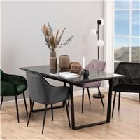 Customise your dining space with this contemporary table featuring a sleek black marble appearance. Crafted from metal and melamine, it offers both visual appeal and durability. Take note of the U-shaped metal legs, adding an industrial flair to its design. - Manufacturers part number: _