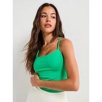 Girlfriend Collective Womens Training Float Willa Strappy Tank Size & Fit True to size - order your usual size Regular fit Available in sizes XS - 3XL Details End Use: Training Womens Training Float Willa Strappy Tank by Girlfriend Collective Green Square neck Branding on back Thin straps Built in bra Buttery soft hand feel Racer back Material & Care Material Content: 90% Polyester, 10% Elastane Washing Instructions: Machine Washable