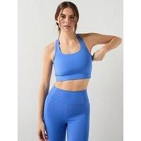 Girlfriend Collective Womens Training Paloma Bra Size & Fit True to size - order your usual size Regular fit Available in sizes XS - 3XL Details End Use: Training Womens Training Paloma Bra by Girlfriend Collective Blue Medium impact Double lined Sweat-wicking material Four-way stretch Racerback Scoop neck Built-in support band Form-hugging fit Material & Care Material Content: 79% Polyester, 21% Elastane Washing Instructions: Machine Washable