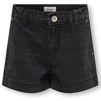 Only Kids Girls Comet Wide Leg Denim Shorts Size & Fit True to size - order your usual size Available in sizes 6 years - 14 years Details Girls Comet Wide Leg Denim Shorts by Only Kids Black Bermuda shorts Button and zip fastening Dark wash fabric Back patch pocket High rise Material & Care Material Content: 100% Cotton Washing Instructions: Machine Washable