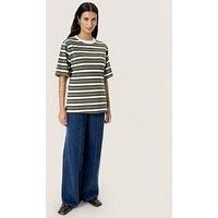 Soaked In Luxury Slneo Coreen Longline T-Shirt Size & Fit True to size - order your usual size Regular fit Longline Available in sizes XS - XXL Details Slneo Coreen T-Shirt by Soaked In Luxury Green Striped print Short sleeves Contrast crew neck Material & Care Material Content: 100% Cotton Washing Instructions: Machine Washable