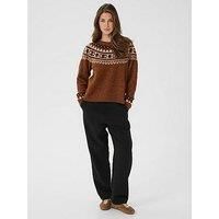 Cream Cherrie Jumper Size & Fit True to size - order your usual size Regular fit Available in sizes XS - XL Details Cherrie Jumper by Cream Brown Fair isle knit Long raglan sleeves Crew neck Material & Care Material Content: 32% Acrylic, 32% Polyester, 20% Wool (certified), 12% Nylon, 4% Elastane Washing Instructions: Hand Wash Only
