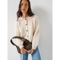 JDY Long Sleeve Boucle Cardigan Size & Fit True to size - order your usual size Regular fit Available in sizes XS - XXL Model is 5'9.5inch and wears a UK size 8 Details Long Sleeve Boucle Cardigan by JDY Beige Crew neck Dropped shoulder Long sleeves Button fastening Ribbed cuffs and hem Material & Care Material Content: 50% Polyester, 40% Polyester, 5% Wool, 3% Elastane, 2% Acrylic Washing Instructions: Machine Washable