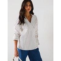 Only Tie Detail Stripe Cross Over Shirt - White/beige 15339982 Material Content: 97% Cotton, 3% Elastane