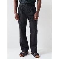 Selected Homme Loose Adam Pleat Trousers Size & Fit True to size - order your usual size Straight fit Available in sizes min - max Model is 6'2" and wears a size Medium (M) Details Loose Adam Pleat Trousers by Selected Homme Black Chino trousers with straight cut Mid rise Belt loops Button and zip fastening Plain Side and back pockets Material & Care Material Content: 50% Cotton 27% Linen, 23% Cotton,