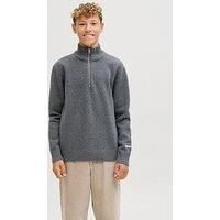 Jack & Jones Junior Boys Half Zip Knitted Jumper - Grey