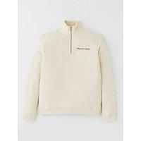 Jack & Jones Junior Boys Embroidered Half Zip Sweat Top Size & Fit Regular fit Available in sizes 8 years - 16 years Details Boys Embroidered Half Zip Sweat by Jack & Jones Junior Light Cream Long sleeves Funnel neckline Half zip fastening Ribbed cuffs and hemline Embroidered 'Original studios' Material & Care Material Content: 73% Cotton - In Conversion, 16% Cotton, 11% Polyester - Recycled, Washing Instructions: Machine Washable - Manufacturers part number: 12284067-4834610