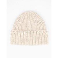 PIECES Pearl Detail Beanie Size & Fit Available in one size Details Pearl Detail Beanie by PIECES Cream Pearl embellished Ribbed knit Turned up brim Material & Care Material Content: 59% Polyester , 22% Nylon, 10% Polyester, 8% Wool, 1% Elastane Washing Instructions: Hand Wash Only