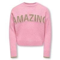 Only Kids Girls Amazing Knitted Jumper Size & Fit Regular fit Available in sizes 5-6 years - 13-14 years Details Girls Amazing Knitted Jumper by Only Kids Pink Knitted Long sleeves Crew neck 'Amazing' slogan Ribbed cuffs and hem Material & Care Material Content: 78% Acrylic, 18% Polyester, 4% Polyamide Washing Instructions: Machine Washable