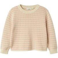 Lil Atelier Mini Girls Gingham Knitted Co-Ord Jumper - Light Pink Put together the perfect outfit for your child with quality everyday styles and create a comfortable and trendy look. Material Content: 100% Cotton Washing Instructions: Machine Washable Long sleeves Ribbed cuffs Loose fit Matching trousers available under WK3H2