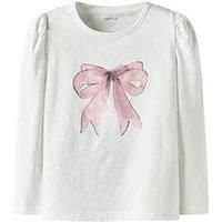 Name It Mini Girls 3D Bow Long Sleeve Tshirt - White