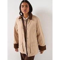 Vero Moda Vmwales Jacket Size & Fit True to size - order your usual size Regular fit Regular length Available in UK sizes: XS: 6; S: 8; M: 10; L: 12; XL: 14; XXL: 16 Model is 5'9" and wears a UK size 8 Details Vmwales Jacket by Vero Moda Beige Spread collar Contrasting cord fabric to the collar and cuffs Press-stud front fastening Front patch pocket with flap closure Long sleeves Comfortable lining Material & Care Material Content: 100% Polyester Washing Instructions: Machine Washable