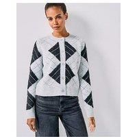 Vero Moda Vmdae Long Sleeve O-Neck Cardigan Size & Fit True to size - order your usual size Regular fit Available in sizes XS - XXXL Model is 5'10" and wears a UK size 8 Details Vmdae Ls O-Neck Cardigan by Vero Moda Grey Diamond print Long sleeves Crew neck Button fastening Material & Care Material Content: 69% Polyester - Recycled, 12% Nylon, 11% Metallic Fibres, 6% Wool, 2% Elastane Washing Instructions: Machine Washable