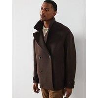 Les Deux Mckee Solid Wool Peacoat Size & Fit True to size - order your usual size Relaxed fit Regular length Available in chest size (cm): S:93-97; M:97-101; L:101-105; XL:105-109; 2XL:109-113 Details Mckee Solid Wool Peacoat by Les Deux Brown Notch lapel Long sleeves with button adjustment cuffs Double breasted fastening Side welted pockets - Manufacturers part number: WO7LQ