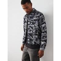 Les Deux Nash All Over Flag Jacquard Overshirt Size & Fit True to size - order your usual size Regular fit Available in sizes S - 2XL Details Nash All Over Flag Jacquard Overshirt by Les Deux Dark Grey Monochrome jacquard weave featuring an all-over flag motif Short-cut overshirt silhouette Classic collar Utility chest flap pockets Long sleeves Front welt pockets Button front closure Straight hem Back yoke with no pleats - Manufacturers part number: WO7E4