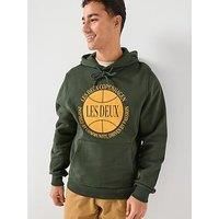 Les Deux Ben Basketball Logo Overhead Hoodie Size & Fit True to size - order your usual size Regular fit Available in chest sizes (cm): S: 93-97; M: 97-101; L: 101-105; XL: 105-109; 2XL: 109-113 Details Ben Basketball Logo Overhead Hoodie by Les Deux Green Brushed fleece fabric Bold flock-print basketball artwork Adjustable drawstring hood Long sleeves Front kangaroo pocket Ribbed cuffs and hem