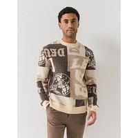 Les Deux Globe Knitted All Over Logo Jumper Size & Fit True to size - order your usual size Relaxed fit Available in sizes S - XL Details Globe Knitted All Over Logo Knitted Jumper by Les Deux Beige Knitted fabric All over logo print with branding details Crew neckline Long sleeves