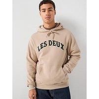 Les Deux Brady Western Arch Logo Overhead Hoodie Size & Fit True to size - order your usual size Regular fit Available in chest sizes (cm): S: 93-97; M: 97-101; L: 101-105; XL: 105-109; 2XL: 109-113 Details Brady Western Arch Logo Overhead Hoodie by Les Deux Beige Heavyweight cotton jersey fabric Outlined flock-print lettering at front Adjustable drawstring hood Front kangaroo pocket Long sleeves Ribbed cuffs and hem