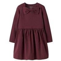 Name It Mini Girls Bow Long Sleeve Dress - Dark Red Refresh your child´s wardrobe with beautiful and cool dresses perfect for any season and occasion.Rib knit has a vertical, striped pattern and good elasticity for a comfortable feel and a timeless look. Material Content: 99% Cotton, 1% Elastane Washing Instructions: Machine Washable Long sleeves Bow detail Regular fit