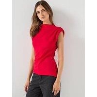 Vero Moda Mille Sleeveless Shoulder Pad Top Size & Fit True to size - order your usual size Regular fit Available in sizes XS - XL (XS:UK 6, S:UK 8, M:UK 10, L:UK 12, XL:UK 14) Model is 5'10" and wears a UK size 8 Details Mille Sleeveless Shoulder Pad Top by Vero Moda Red Sleeveless Boat neckline Asymmetric hem Gathered shoulder detail Side split hem Material & Care Material Content: 53% Polyester - Recycled, 42% Viscose, 5% Elastane Washing Instructions: Machine Washable