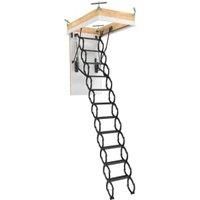 The FAKRO LST Scissors Loft Ladder is equipped with a 3.6cm thick white insulated hatch as standard. The box is made of wood and has quick-fit brackets while the hatch opening mechanism guarantees safe folding and unfolding. In addition its construction has eliminated the need for a lock. To fit ceiling heights between 280cm and 230cm. The overall floor to ceiling ladder height can be increased to a maximum of 330cm by adding two LSS treads. The ladder is powder-coated in RAL 7022 Grey. Equipped with wo...