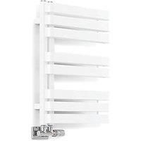 A Sleek Contemporary Shape Large, sweeping flat bars double back on themselves to create a distinct and modern shape. Visible brackets are kept to a minimum for a free-floating effect. The towel rail comes in Soft RAL 9016 White for a super matt, smooth textured finish. Designer Styling with Practicality in Mind Stylish but practical, the towel rail is mounted on one side only, leaving more room for hanging. It can be mounted with the horizontal bars on the left or the right, whichever is more convenien...