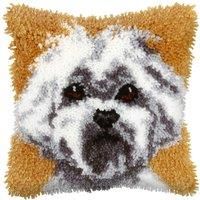 Latch hook cushion kit. Kit includes: printed, 52% cotton/48% polyester, 4.5 count Zweigart canvas, acrylic pre-cut yarn in bundled packs, latch-hook tool, chart and instructions. Approximate finished size: (w/h) 25.5 x 25.5cm or 10 x 10in. Handwash only. | Groves & Thames L/HK CUSHION WESTIE - Latch Hook Kit: Cushion: Small: Westie - Orchidea - Manufacturers part number: ORC.4089