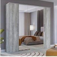 Very Home Prague 5 Door Wardrobe With Mirrors - FSC Certified With an updated wood-effect finish that provides greater clarity and grain detail, this wardrobe takes the Prague bedroom furniture range to even more stylish heights. Available in new white, black ash, new oak-effect or grey, each side has a hanging rail for longer items plus an upper shelf, while the other has a further 2 rails (one on top of the other), providing twice the hanging space for shorter items. The middle section is fitted with ...