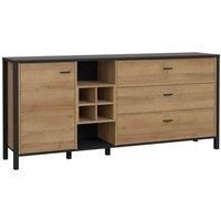 High Rock, a captivating and contemporary collection which has a perfect blend of the Riviera Oak decor with deep black accents, this collection immediately captivates attention with its originality. The sleek black metal handles add a touch of elegance, while the tables boast robust metal legs in a frame-like design, contributing to a distinct loft character within the space. Beyond its striking aesthetics, High Rock prioritises functionality with its ingenious storage solutions. Cabinets, chests of drawers, and display cabinets offer ample space to organise belongings, while the thoughtfully equipped tables come with practical drawers. This versatile collection effortlessly fits into any room, from the living room and dining area to the hall, youth room, or bedroom, adding a touch of sophistication and practicality to every corner of the home.Contemporary Industrial DesignWarm Riviera oak and black matt1 door3 drawerBlack metal handle Dimensions (mm) H 851 W 1863 D 402 Weight (g) 631... - Manufacturers part number: Furniture To Go_
