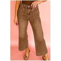 These denim pants offer a blend of style and practicality featuring functional utility pockets and a fashionable wide leg cut. Ideal for everyday wear they provide both comfort and a contemporary aesthetic. | Everyday The Label Women's Breen Cropped High Rise Wide Leg Jeans in Dark Brown | Size: 18