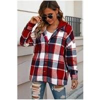Everyday The Label Women's Red Hooded Plaid Button Front Shacket | Size: 20