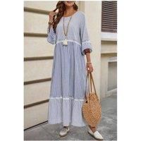 This striped casual long dress features long sleeves a round neckline and is designed with comfortable fit. | Everyday The Label Women's Sky Blue Stripe Patchwork Crossed Lace Detail Bracelet Sleeve Maxi | Size: Small