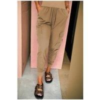 These casual jogger pants feature a comfortable design perfect for everyday wear. The pants include convenient pockets. | Everyday The Label Women's Camel Elastic High Waist Pocketed Cargo Jogger Pants | Size: 10