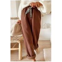 Everyday The Label Women's Coffee Fleece Lined Leopard Drawstring Elastic Waist Solid Pants in Dark Brown | Size: 10