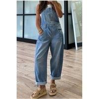 Classic denim overalls with a comfortable and stylish design. Perfect for casual wear. | Everyday The Label Women's Dusk Blue Adjustable Buckle Barrel Denim Overalls in Mid Blue | Size: Large
